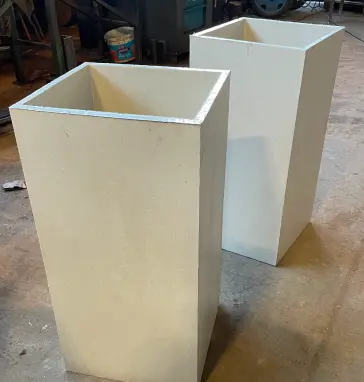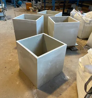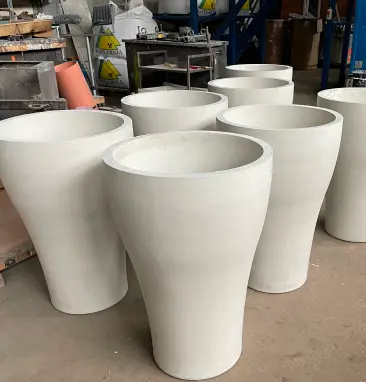 Doskonała szczelność, nienasiąkliwość, odporność na przemarzanie oraz grzyby, mchy, porosty jak i możliwość dowolnego formowania i koloru zapewnia donicom z polimerobetonu niezwykłą trwałość walory estetyczne i gwarancję wieloletniego użytkowania w warunkach letnich i zimowych.