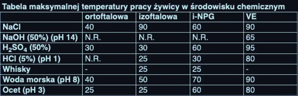 Chemoodporność – odporność chemiczna pH 1-12 (w zależności od zastosowanej żywicy). Utrata masy próbki PRC przy pH 14 – (1-molowy NaOH): 0,20 %; Ubytek masy pH 1 – (0,5-molowy H₂SO₄): 0,17 %;